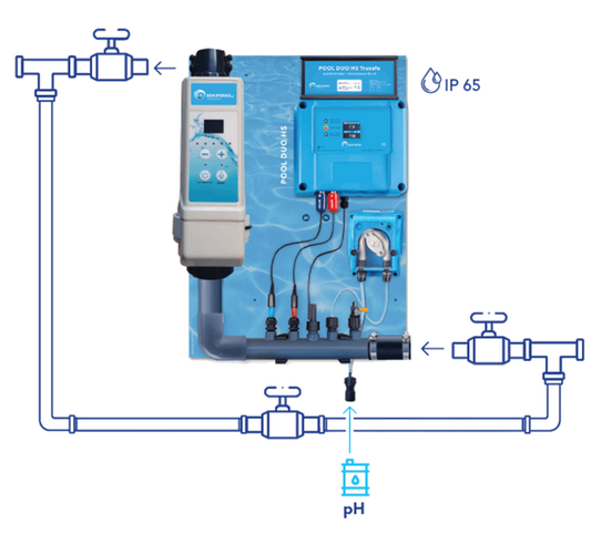 Para simplificar y agilizar la instalación de todos los dispositivos necesarios, disponemos de dispositivos de tratamiento 100% premontados, tanto para el cloro y ph líquido tradicional, como para el tratamiento del agua por electrólisis salina y ph, libre de olores e irritaciones.