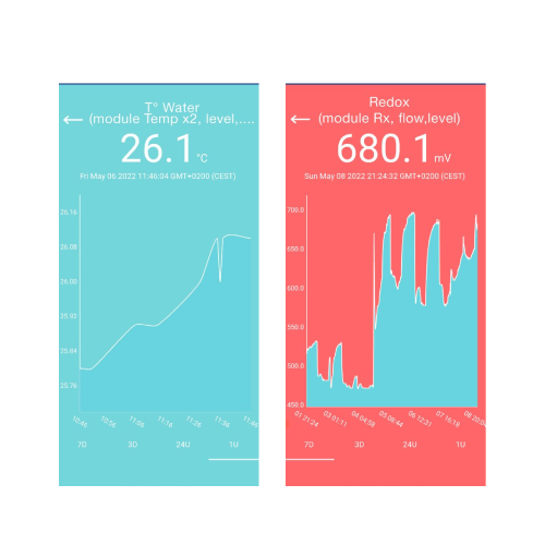Você pode ler esses valores no seu celular e usá-los posteriormente para ligar ou desligar determinados dispositivos, como bomba de filtro/regulador de frequência, bomba de calor ou dosagem de cloro.