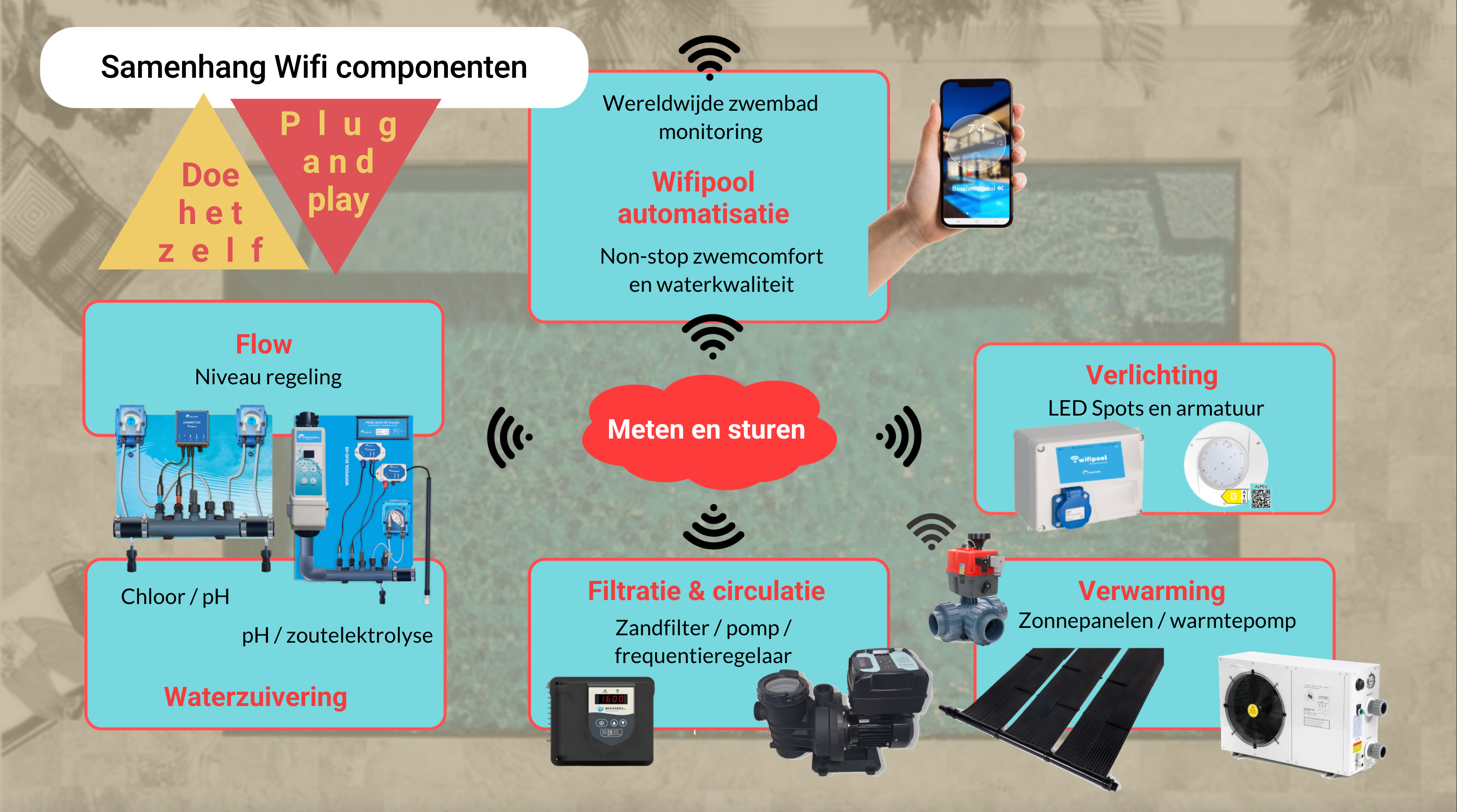 A aplicação e os produtos Wifipool baseiam-se numa tecnologia simples: barata, fiável e fácil de instalar para o utilizador.