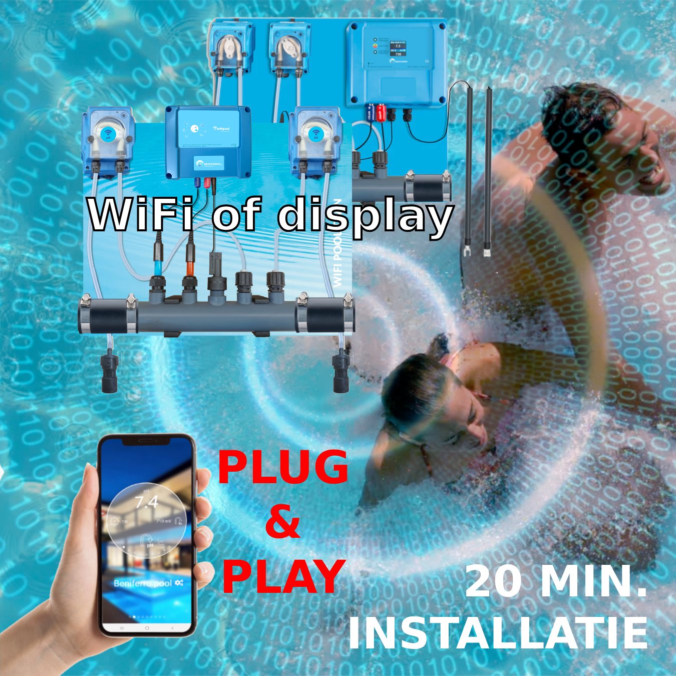 La base de este aparato es la placa WIFIPOOL Gen 2, que permite controlar toda una piscina. Con esta placa siempre es posible realizar las siguientes mediciones: pH, RX (cloro), caudal, nivel (x3), temperatura(x3), presión y conductividad (salinidad). Además, se pueden conectar 4 dispositivos de control (regulador de frecuencia, bombas peristálticas, electrólisis salina, lámpara UV, válvula automática, ...). La placa dispone de una conexión para un cable de Internet (cable Ethernet), que puede utilizarse en lugar de una señal wifi. La aplicación WIFIPOOL está diseñada para que los automatismos necesarios para controlar su piscina puedan introducirse ya de fábrica. Gracias a la conexión Ethernet, el aparato puede conectarse de forma muy sencilla, rápida y sin fallos a la red wifi y al teléfono de su casa