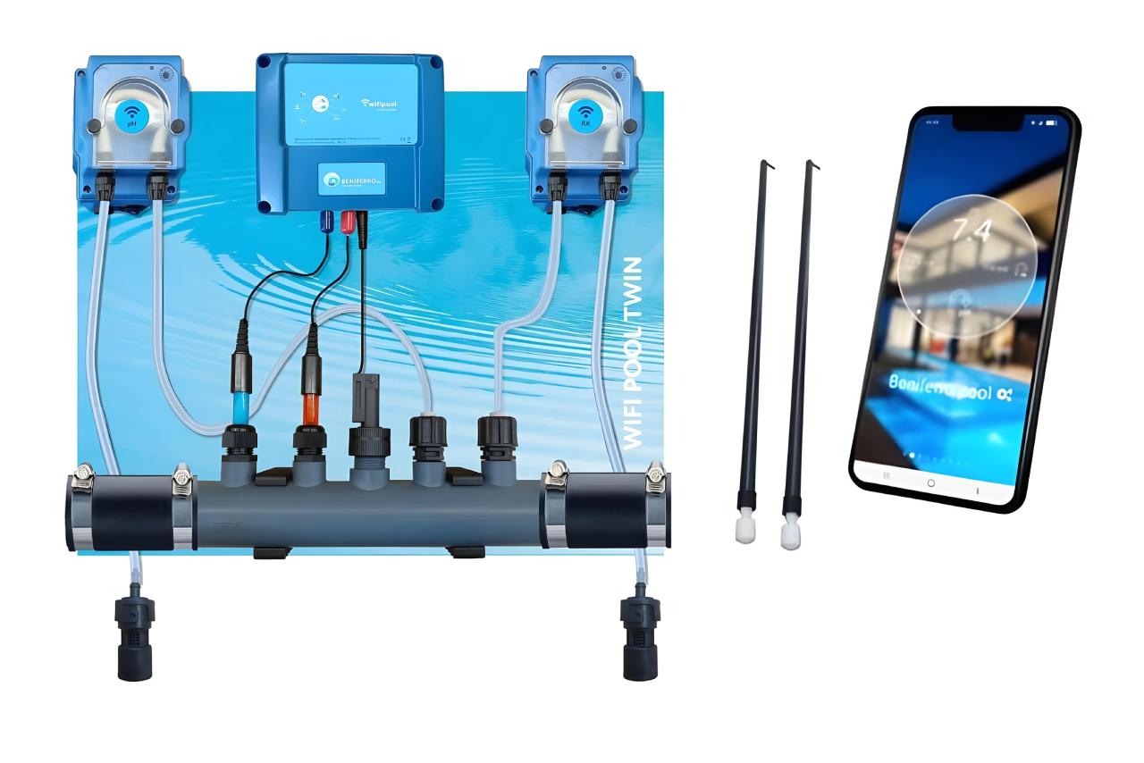 El Beni Twin wifi es un dispositivo automático WIFI de tratamiento del agua para la dosificación de cloro líquido y neutralizador de pH, de alta calidad y a un precio increíble.con una opción especial de "dosificación lenta / rápida" en la aplicación, el Beni Twin wifi, es adecuado tanto para Spas y piscinas de hasta 150m³.